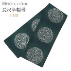 半幅帯 長尺 日本製 小袋 半巾帯 深緑 緑 グリーン 丸に小紋 レディース 女性用 着物 浴衣 小紋 紬 袴 カジュアル 帯 洒落帯 おしゃれ 普段着 デニム着物 母の日