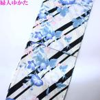 綿紗もじり織 縦縞 婦人用 浴衣 濃紺 薔薇 銀縞 LY3156 新品 Fサイズ ゆかた 夏着物 レディース ギフト 10代 20代 30代 40代 送料込み