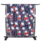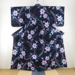 浴衣 身丈157cm 裄67cm レディース 花柄 裄長 裄Lサイズ 夏用 木綿 濃紺色 美品