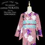 浴衣 レディース 白×赤 ストライプ 縦縞 ストライプ 白・黒・紫の薔薇 凛と華やぐ夏浴衣 大人かわいい 10代〜40代 50代 60代 夏祭り 花火大会 お出かけ 爆買