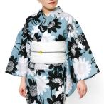 浴衣 ノルディックフラワー ブルーグレー 黒 水色 北欧風 花柄 大柄 ニュアンスカラー レディース ポップ モダン 綿 仕立上がり 単品 20代 30代 40代 50代