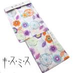 浴衣 レディース キスミス 白 パープル ブランド浴衣 蝶々 お仕立て上がり 紅梅織り 女性用 フリーサイズ ゆかた 単品 綿100% 花柄