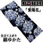 ゆかた 「紫陽花」 紺 リップステージ 浴衣 古典柄 仕立て上がり あじさい アジサイ ネイビー フリーサイズ 綿浴衣 変り透かし織 レディース 綿100% プレタ