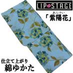ゆかた 「紫陽花」 水色 リップステージ 浴衣 古典柄 仕立て上がり あじさい アジサイ ブルー フリーサイズ 綿浴衣 変り透かし織 レディース 綿100% プレタ