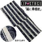 ゆかた 「縞に四季花」 白地に紺 リップステージ 浴衣 古典柄 仕立て上がり ストライプ フリーサイズ 綿浴衣 変り透かし織 レディース 綿100% ブランド浴衣
