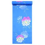 浴衣 反物 No.342 濃紺地 アジサイ・亀甲柄 耳有り