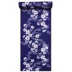 綿麻紅梅 浴衣反物(男女兼用ゆかた) キングサイズ 麻柄藍紺 お誂え かつらぎ物語