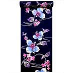 浴衣 反物 NO.87 濃紺地・ゆり柄・注染染め/耳あり