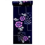 【キズ有り・特価処分品】源氏物語注染本染め(手染め)浴衣反物・紺紫地花柄(gt0q17s)