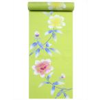 浴衣 反物 NO.266 若草色・ツツジ柄・注染染め/耳あり