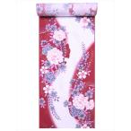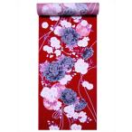 浴衣 反物 No.239 赤地 牡丹・雪輪柄 片面染め/耳ナシ