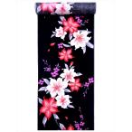 浴衣反物 教材用 No.15 黒地 百合柄 片面染め/耳ナシ