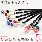 和装 髪飾り 小紋 紬 浴衣 通年用 日本製 訳あり 菱市松柄 ぶらぶら玉簪 かんざし 簪 一本差し レディース