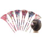 【限定品/訳あり含む】和かんざし ちりめん柄 2本足 和柄 スティック 扇形 可愛い おしゃれ 着物 浴衣 和装 ヘアアレンジ 軽い まとめ髪 飾り 華やか【ray】
