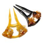 かんざし 髪飾り 鼈甲風 花 梅 和装髪飾り パール 2本挿し 透かし 扇 黒 黄