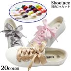 靴紐 靴ひも シューレース レディース サテン調 リボン 幅広 平型 光沢感 ふんわり 無地 可愛い スニーカー シューズ くつ