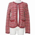 ロイスクレヨン Lois CRAYON ニットジャケット 16003737-7 ノーカラー モヘヤ混 裏地レース ラメ M 赤系 X レディース