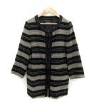 トータリテ Totalite ノーカラージャケット ミドル丈 ボーダー柄 スパンコール装飾 38 M 黒 ブラック ベージュ /SY5 レディース