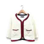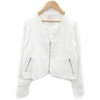 マーキュリーデュオ MERCURYDUO ノーカラージャケット ミドル丈 ジップアップ ツイード スパンコール F ホワイト 白 /YM43 レディース
