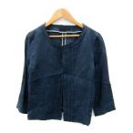 ロペ ROPE ノーカラージャケット ミドル丈 無地 薄手 リネン 麻 36 S 紺 ネイビー /SY34 レディース