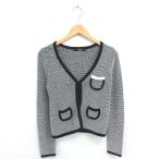 ビッキー VICKY ノーカラー ジャケット アウター ニット ホック留め 2 ホワイト ブラック 白 黒 /TT レディース