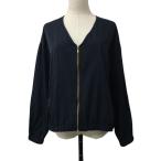 パオラフラーニ PAOLA FRANI ジップアップ ツイード ノーカラージャケット 42 ネイビー /ES ■OS レディース