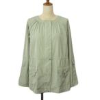 シンプルライフ SIMPLE LIFE ジャケット ノーカラー ギャザー ドロスト 13 緑 グリーン レディース