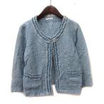 アー・ヴェ・ヴェスタンダード ミッシェルクラン a.v.v standard ノーカラージャケット フリンジ 麻 リネン 38 M 水色 /YI レディース