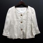 ストロベリーフィールズ STRAWBERRY-FIELDS ノーカラージャケット 長袖 リネン混 薄手 オフホワイト 白 2 *T641 レディース