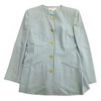 良品 NINA RICCI ニナリッチ ノーカラー ジャケット ブルゾン ウール 背抜き 長袖 11号 ブルー グリーン系 レディース 古着 中古