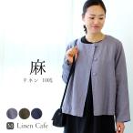 『上品ノーカラージャケット』●リネン100%●ジャケット[リネン,麻,アウター,カーデ,無地,ナチュリラ,リンネル,ナチュラル,服]