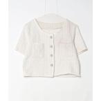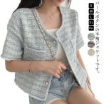 ジャケット ツイードジャケット レディース 半袖 ツイード風 レディースアウター ノーカラージャケット 夏 ショート丈 サマージャケット ツイード ジ