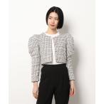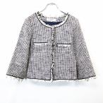 エゴイスト EGOIST ジャケット ノーカラー ショート ツイード フリンジ 長袖 2 黒 白 ブラック ホワイト レディース