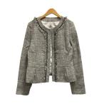 ◇ Θ ピッチン 上品 華やか 長袖 パール付きノーカラージャケット サイズM ブラック系 レディース E