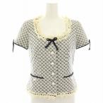 ルネ Rene ティシュー TISSUE ノーカラージャケット アウター 半袖 花柄 レース リボン 34 紺 ネイビー 白 ホワイト /YT ▲H レディース