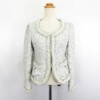 ◇ Θ ROPE PICNIC ツイード ラメ混 長袖 ノーカラージャケット サイズ38 ホワイト ゴールド マルチ レディース E