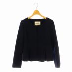 ロペ ROPE ノーカラーペプラムジャケット タック 40 紺 ネイビー /AT ■OS レディース