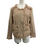 未使用品 ダイアグラム Diagram ジャケット ノーカラー フリンジ リネン混 比翼仕立て ダブルジップ 長袖 36 ベージュ レディース