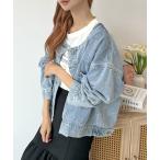 デニムジャケット gジャン フロッキーデニムBIGブルゾン/セットアップ対応 レディース