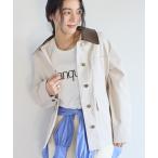 カバーオール 合革襟配色フェイクスエードジャケット レディース