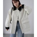 カバーオール オーバーサイズボア襟カバーオールフェイクレザージャケット レディース