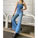 カバーオール デニムフレアオールインワン レディース