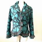 #anc イタリヤ 伊太利屋 ジャケット 9 黒 緑 シルバーラメ レース ステッチ フリル 総柄 レディース [937668]