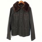 #anc キャラオクルス CARAOCRUZ レリアン Leilian ジャケット カーキ系 茶 デニム調 ノーカラー レッキスファー付き レディース [878261]