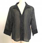 #anc レリアン Leilian ジャケット 11 黒 濃紺 薄手 ストライプ 美品 レディース [944921]