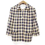 #anc ミラショーン milaschon ジャケット 40 ベージュ 紺 白 ブロックチェック 七分袖 レディース [945129]