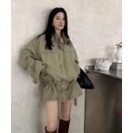 カバーオール ミドル丈カジュアルドローストリングジャケット レディース