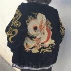 [ヨコスカ] 男女兼用 真龍・鳳凰刺繍マーク スカジャン リバーシブル 高級品 ジャケット 横須賀ファッション S~2XL 野球服 おしゃれ