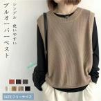 ニットベスト レディース 2タイプ セーターベスト 秋 学生 女子 大きいサイズ ゆったり おしゃれ ベスト セーター ロング vネック クルーネック オーバーサイズ