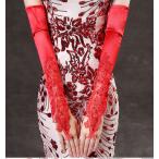 ウエディンググローブ ロング 結婚式 安い ブライダルグローブ 花嫁 ロンググローブ 手袋 二次会 ウェディンググローブ フィンガーレス 刺繍 赤 レース